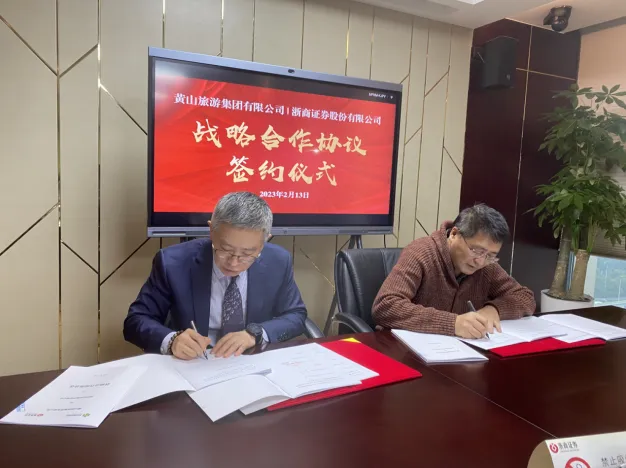 黄山旅游集团与浙商证券签署战术结合公约。图源:黄山旅游集团